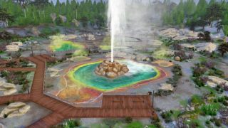 この建物は間欠泉の観測所? らしい。クリスタル・バレーから、ワンダーウッド・ワイルドのホットヘッド・ロック・ゲイザーの間欠泉が見れるようなら非常事態かもね…。お湯の次に赤い溶岩が吹き上がっててもおかしくない。これは蝶のトピアリーというらしい...