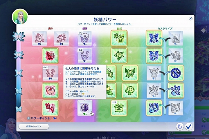 妖精パワーポイント貯まったので、『他人の感情に影響を与える』を取得。