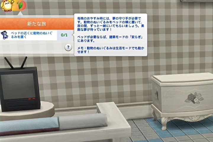 『ベッドの近くに動物のぬいぐるみを置く』が追加された。