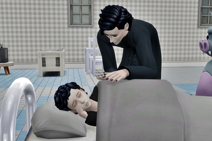アランがランドルを寝かしつける。