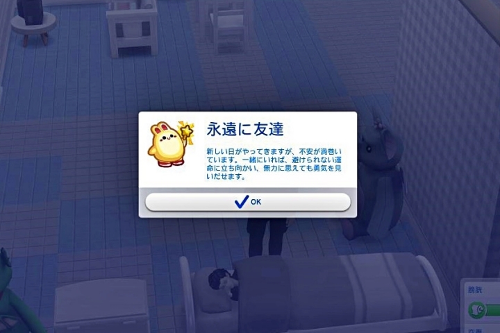 友達とたくさん活動したので、そろそろ寝る時間らしい。