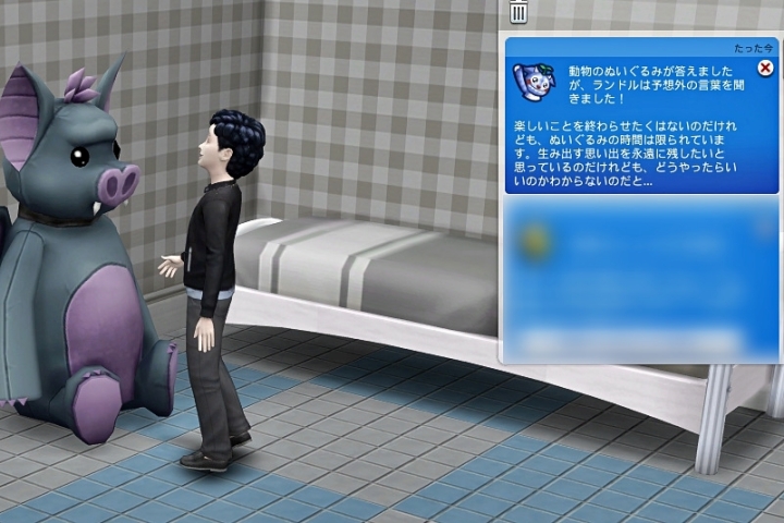 よく分からんので、新しく動物のぬいぐるみ買ってベッドの側に置いた。