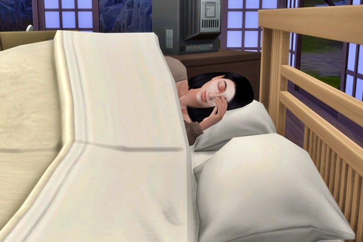シムにとっては外もベッドも変わらないようだ。