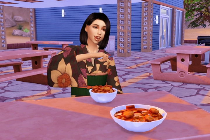 誰かが作ったバイソンシチューを食べる。