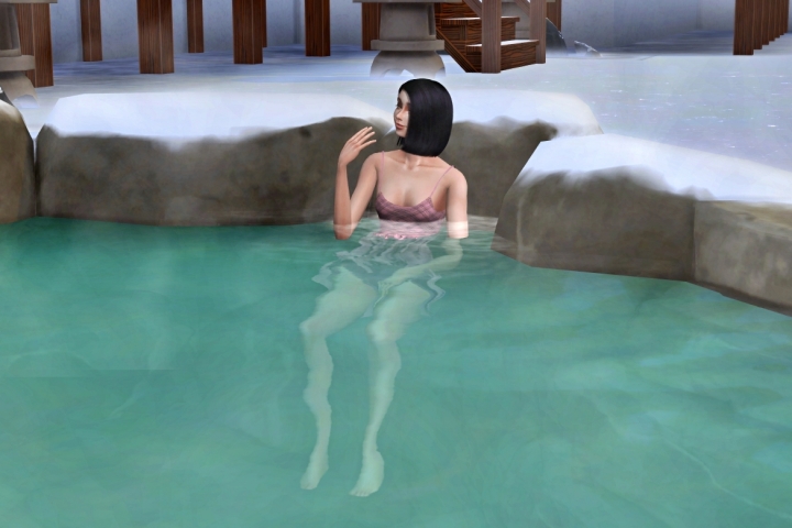 この家には庭には温泉もある。
