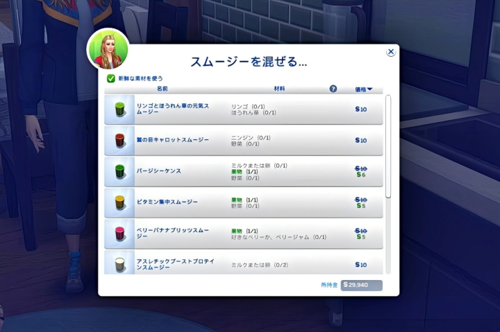 クリックするとスムージーが作れる。